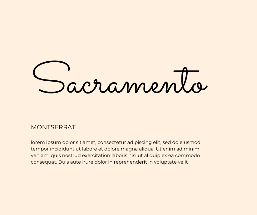 Sacramento is a Google font suitable for display. It pairs well with san-serif Montserrat for an all-caps sub-heading and body text.