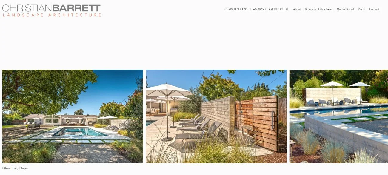 Christian Barrett Landscape Architecture’s ICA is high-end residential clients in Napa and Santa Barbara. He does commercial work, but it’s not his main ICA, so we featured residential work in his portfolio. Source | Christian Barrett Landscape Architecture. Website Design | Scaled Up Studio