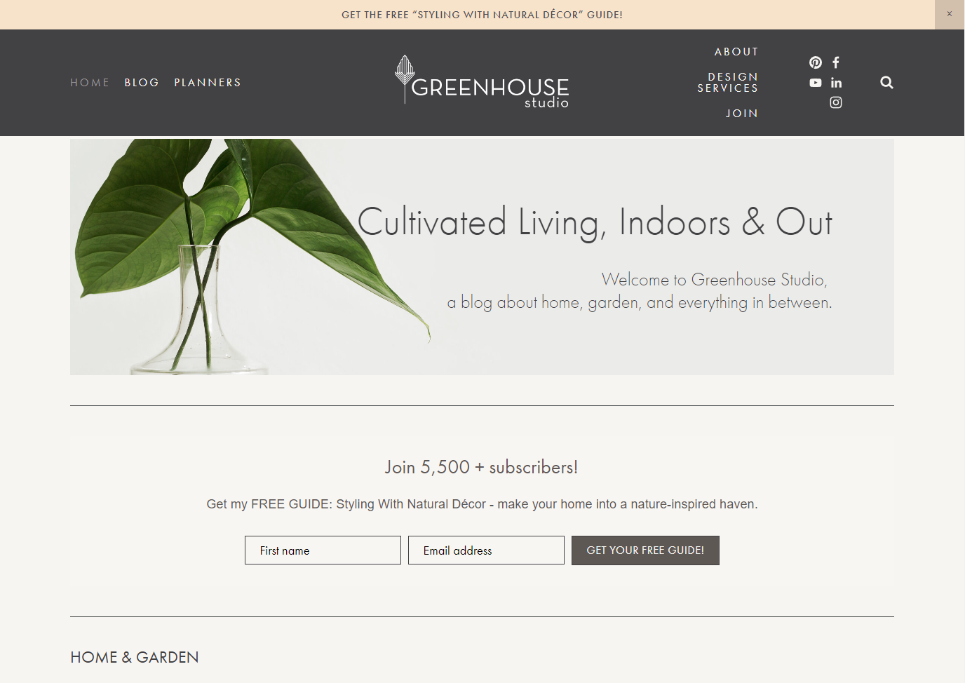 Stating my subscriber count is a form of social proof for my homepage newsletter CTA for my Greenhouse Studio blog.